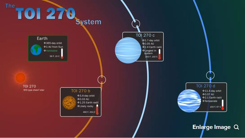Also, TESS found TOI 270’s (a dwarf star) intriguing planets. TOI 270 b is about 25% bigger than Earth and it’s too hot as it’s near the star. The other planets TOI 270 c and TOI 270 d are likely closer to gas-giant Neptune. Maximilian Günther, a lead author of a paper published in the journal Nature Astronomy “TOI-270 will soon allow us to study the ‘missing link’ between rocky Earth-like planets and gas-dominant mini-Neptune’s, because here all these types formed in the same system.”