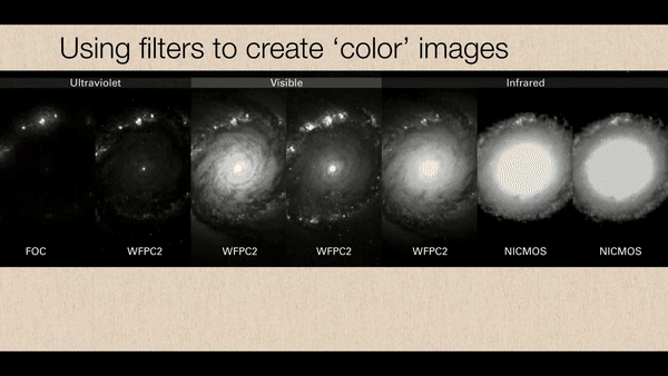 - After capturing images through different filters, astronomers overlay and combine them to create a full-color image. The red-filtered image contributes red tones, the green-filtered image provides green tones, and the blue-filtered image adds blue tones to the final picture.