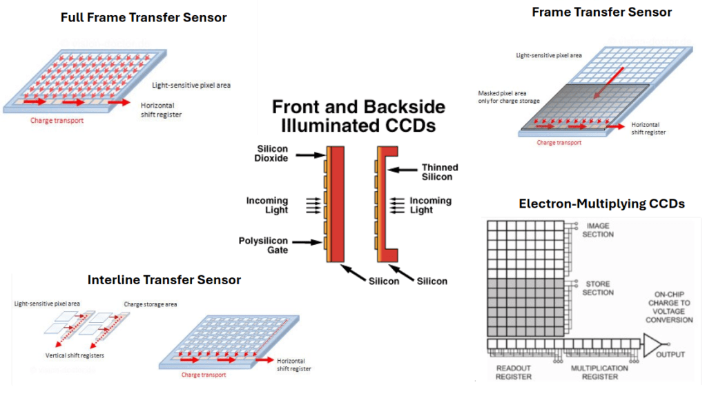 There are quite a few types of CCDs that has unique characteristics suitable for specific research case across various telescopes.